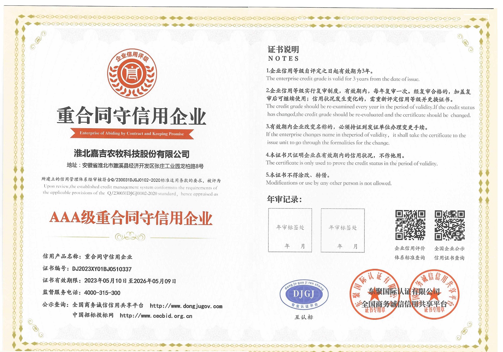AAA級重合同守信用企業
